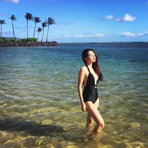 Khi hoà mình vào khung cảnh lãng mạn của bãi biển đẹp nhất nước Mĩ, Bảo Anh không ngại khoe vóc dáng gợi cảm, nóng bỏng với trang phục bikini quyến rũ.