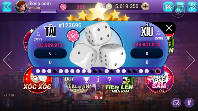 Game tài xỉu có tỉ lệ thắng cược đa dạng.