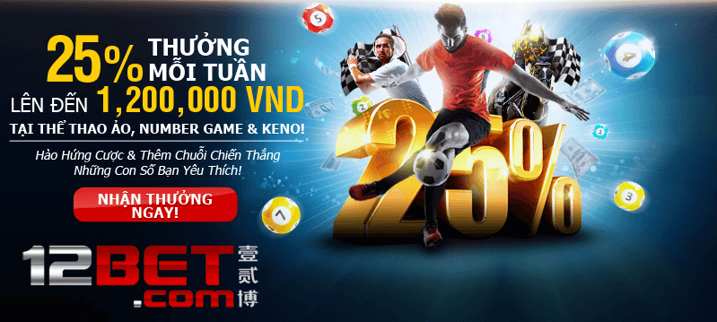 Tiền thưởng và khuyến mãi tại nhà cái 12Bet đảm bảo sẽ khiến mọi khách hàng hài lòng. Dù là thành viên mới hay là “lão làng” tại 12Bet thì vẫn luôn có những chương trình khuyến mãi phù hợp cho bạn tham gia.