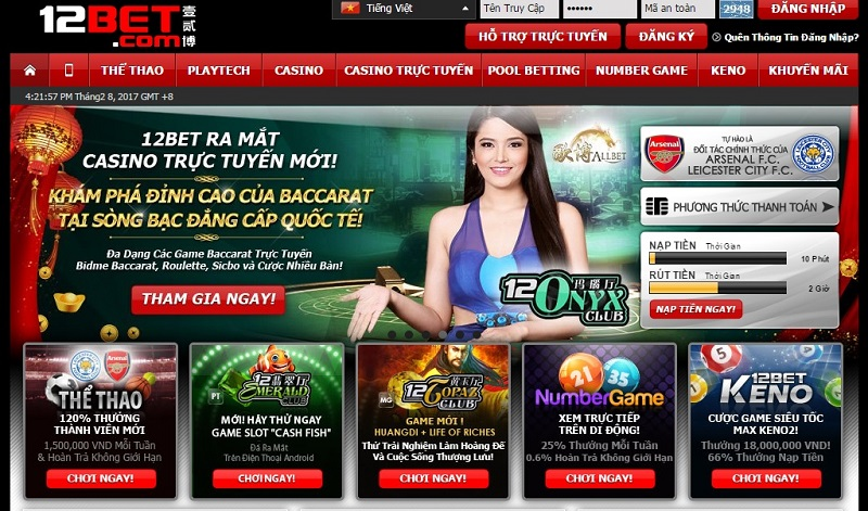 Hiện tại thì 12bet đang liên kết với các tài khoản ngân hàng Đông Á, ACB, Vietcombank và Techcombank.
