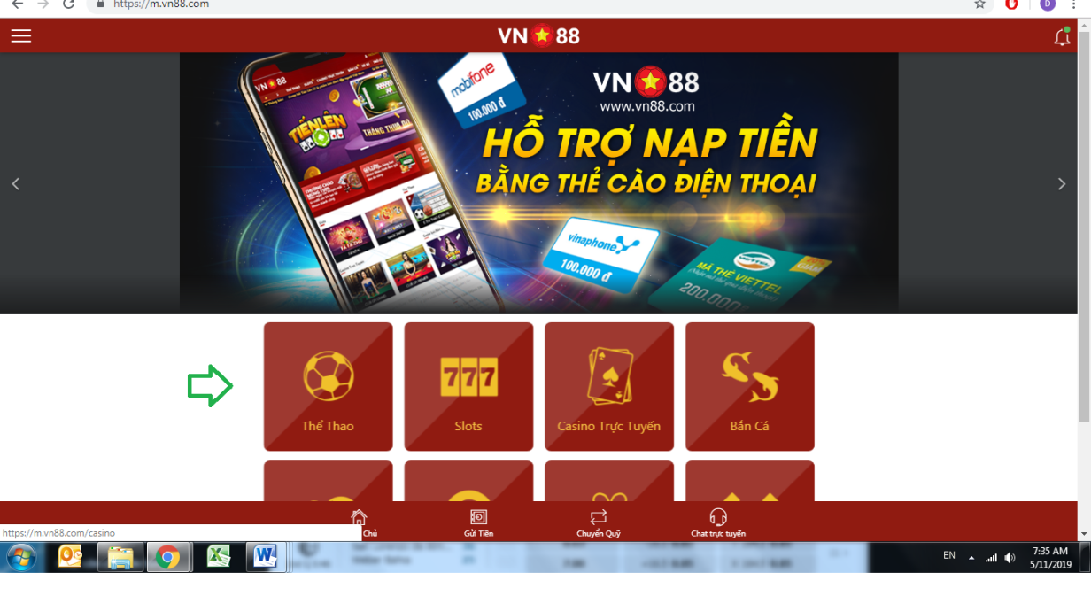 Bước 1: Đăng nhập nhà cái bằng cách truy cập trang web https://m.vn88.com/ và đăng nhập theo tài khoản đã đăng kí với VN88
