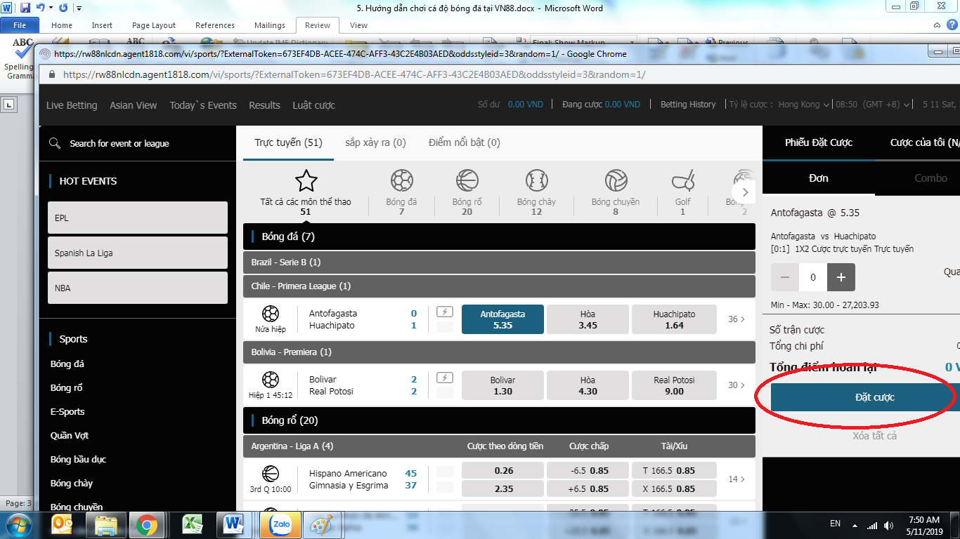 Bước 3: Chọn trận đấu, kèo cược và số tiền cược
