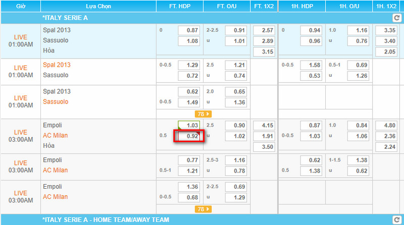 Bước 4: Chọn trận đấu bạn muốn đặt cược