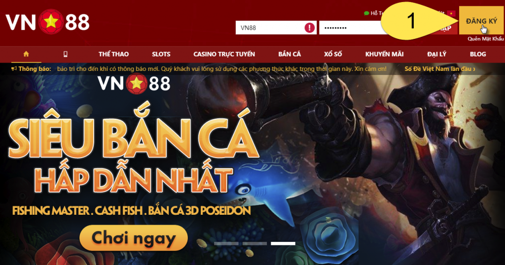 Khá nhiều người đang tham gia cá cược trực tuyến như là một thú vui vừa mang tính giải trí, vừa đem lại cơ hội kiếm tiền. Vì thế, thật đáng tiếc nếu bạn bỏ qua cơ hội có một không hai này khi tham gia chơi tại nhà cái VN88. Hãy cùng thực hiện theo các hướng dẫn đăng ký tạo tài khoản sau để nhanh chóng tận hưởng nhiều niềm vui hấp dẫn mà VN88 mang lại.