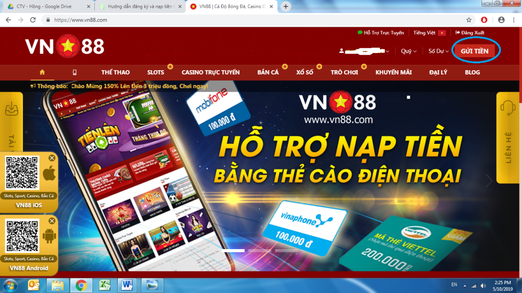 Để trở thành người chơi và thử vận may tại VN88 – một trong những nhà cái uy tín tại thị trường hiện nay thì phải làm thế nào? Đó là câu hỏi được nhiều người chơi quan tâm. Thực tế việc này lại đơn giản hơn bạn nghĩ nhiều. Trước tiên bạn phải tạo tài khoản tại nhà cái và tiến hành nạp tiền vào tài khoản, chọn mục muốn chơi và tiến hành chơi thôi. Sau đây tôi sẽ hướng dẫn bạn cách thức nạp tiền vào nhà cái VN88 theo các bước sau: