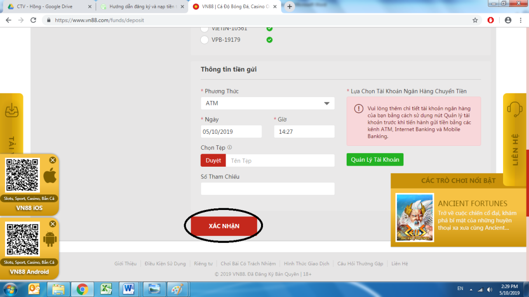 Ngày, giờ: Thông tin về ngày, giờ bạn đã chuyển tiền cho VN88. Hãy căn cứ vào biên lai chuyển tiền để điền thông tin chính xác nhất