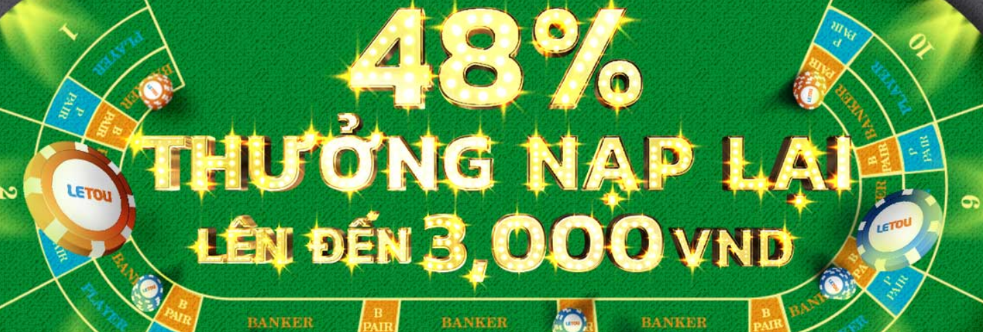 Nhà cái Letou dành tặng 120% giá trị nạp tiền lần đầu cho thành viên mới, lên tới 6,888 VND dùng để tham gia các trò chơi cá cược thể thao. Và chương trình tặng 100% giá trị nạp tiền lần đầu tiên dành cho thành viên mới, lên đến 1,800 VND để chơi các game cá cược ăn tiền thật tại Letou.