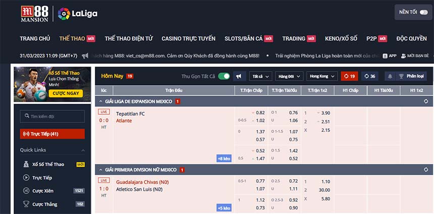 • Kèo bóng đá m88 ăn cao, có đầy đủ tất cả các kèo, trận bóng đá trên khắp thế giới.