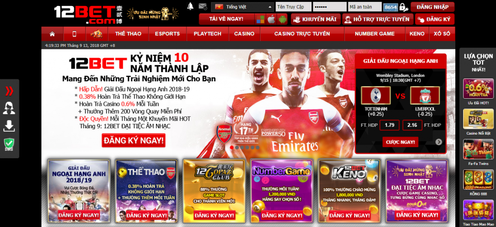 Nhà cái 12 Bet nằm trong top 20 nhà điều hành game nổi tiếng nhất Việt Nam. Trong xu thế phát triển thị trường cá cược. Các nhà cái đã nhận thấy được tiềm năng lớn tại thị trường Việt Nam. Và 12BET không phải là 1 ngoại lệ.