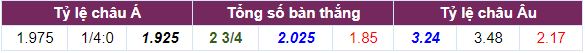 Số bàn thắng mà các nhà cái đưa ra cho trận đấu này chỉ là 2 3/4 trái. Đây là số bàn thắng được cho là khá phù hợp với thực lực và hoàn cảnh hiện tại của trận đấu này. Theo đó nếu lựa chọn của Tài tỷ lệ kèo ăn sẽ là 2.025 và nếu chọn cửa xỉu thì tỷ lệ ăn sẽ là 1.85