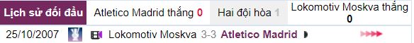Lịch sử đối đầu của Atletico Madrid vs Lokomotiv Moskva