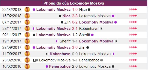 - Trong khi đó với 5 trận thắng, 3 trận hòa và 2 trận thất bại trong 10 trận liên tiếp, phong độ thi đấu của Lokomotiv Moskval không được đánh giá cao khi so sánh với đối thủ.