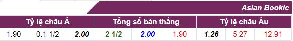 - Kèo Tài Xỉu cả trận: Số bàn thắng mà nhà cái đưa ra trong trận này là 2 1/2 trái. Nếu dân cược lựa chọn của Tài sẽ ăn kèo với tỉ lệ 2.00. Nếu cho của Xỉu ăn kèo với tỉ lệ 1.90