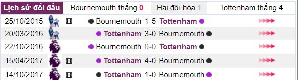 Lịch sử đối đầu của Bournemouth vs Tottenham