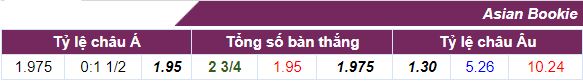 - Kèo Tài Xỉu cả trận: Số bàn thắng mà nhà cái đưa ra trong trận này là 2 3/4 trái. Nếu dân cược lựa chọn của Tài sẽ ăn kèo với tỉ lệ 1.95. Nếu cho của Xỉu ăn kèo với tỉ lệ 1.975