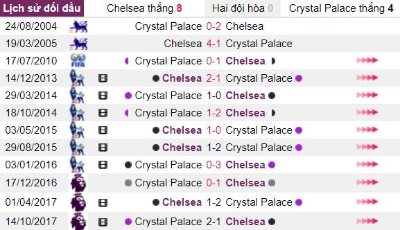 Lịch sử đối đầu của Chelsea vs Crystal Palace