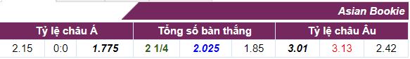 - Kèo Tài Xỉu cả trận: Số bàn thắng mà nhà cái đưa ra trong trận này là 2 1/4 trái. Nếu dân cược lựa chọn của Tài sẽ ăn kèo với tỉ lệ 2.025. Nếu cho của Xỉu ăn kèo với tỉ lệ 1.85.