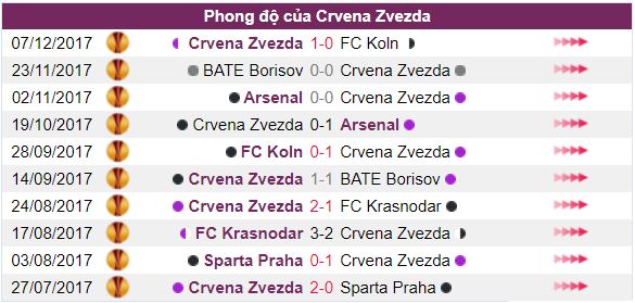 Phong độ thi đấu của Crvena Zvezda