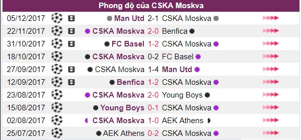 - Phong độ thi đấu gần đây của CSKA Moskva được đánh giá khá cao. 10 trận thi đấu gần nhất trên tất cả các đấu trường CSKA Moskva dành được 7 trận thắng, 0 trận hòa và để thua 3 trận