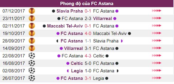 Phong độ thi đấu của FC Astana