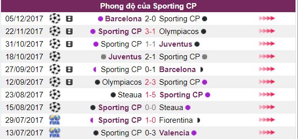 Phong độ thi đấu của Sporting CP