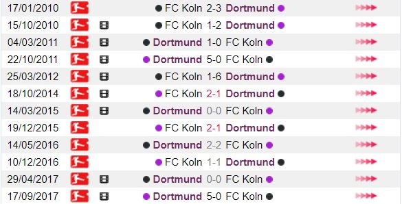 Lịch sử đối đầu của FC Koln vs Dortmund