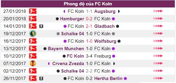 Phong độ thi đấu của FC Koln