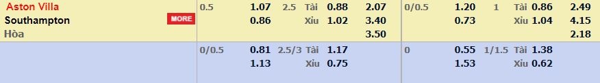 - Mức kèo nhà cái cược chấp trận này: Aston Villa chấp 0,5 Trái. Aston Villla ăn 1,07. Southampton ăn 0,86