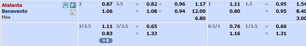 - Mức kèo nhà cái cược chấp trận này: Atalanta chấp 2 trái. Atalanta ăn 0,87. Benevento ăn 1,06