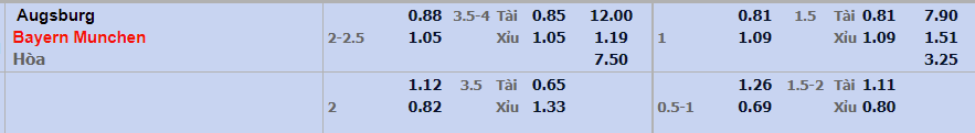 - Mức kèo nhà cái đưa ra trận này: Bayern Munich chấp 2,25 Trái. Augsburg ăn 0,88. Bayern Munich ăn 1,05