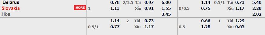- Mức kèo nhà cái đưa ra trận này: Slovakia chấp 1 Trái. Belarus ăn 0,78. Slovakia ăn 1,13