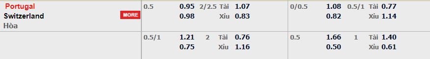 - Mức kèo nhà cái cược chấp trận này: Bồ Đào Nha chấp 0,5 Trái. Bồ Đào Nha ăn 0,95. Thụy Sĩ ăn 0,98
