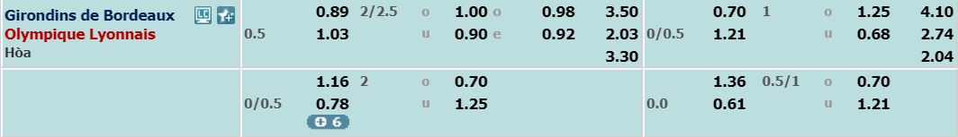 - Mức kèo chấp kèo nhà cái hôm nay đưa ra cho cả trận: Olympique Lyon chấp 0,5 trái. Bordeaux ăn 0,89. Olympique Lyon ăn 1,03