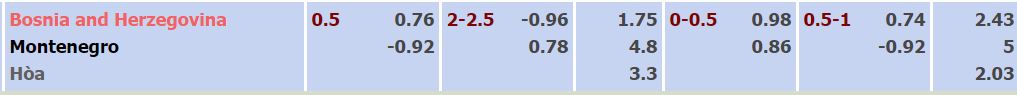Tỷ lệ cược Bosnia Herzegovina vs Montenegro – 23h00 – 0/06/2021
