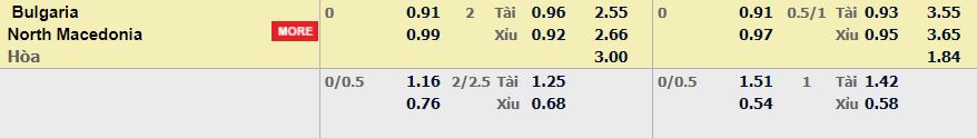 - Mức kèo nhà cái đưa ra trận này: Hòa – Được – Thua, Bulgaria ăn 0,91. Bắc Macedonia ăn 0,99