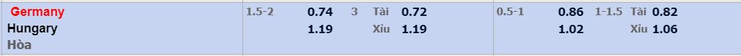 - Mức kèo nhà cái TF88 cược chấp trận này: Đức chấp 1,75 Trái. Đức ăn 0,74. Hungary ăn 1,19