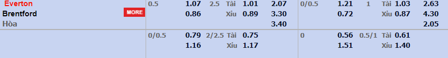 - Mức kèo nhà cái đưa ra trận này: Everton chấp 0,5 Trái. Everton ăn 1,07. Brentford ăn 0,86