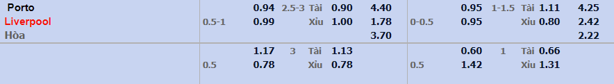 - Mức kèo nhà cái đưa ra trận này: Liverpool chấp 0,75 Trái. FC Porto ăn 0,94. Liverpool ăn 0,99