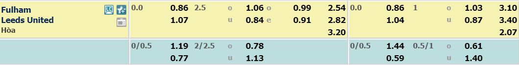 - Mức kèo nhà cái cược chấp trận này: Hòa – Được – THua. Fulham ăn 0,86. Leeds Utd ăn 1,07
