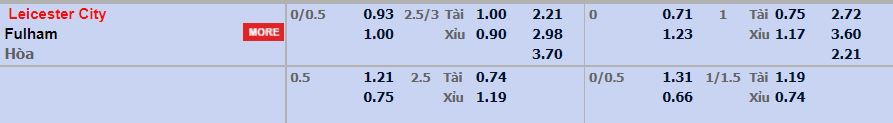 - Mức kèo nhà cái cược chấp trận này: Leicester City chấp 0,25 Trái. Leicester City ăn 0,93. Fulham ăn 1,00