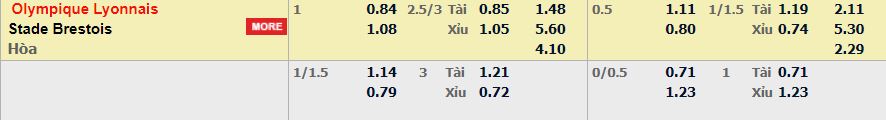 - Mức kèo nhà cái cược chấp trận này: Lyon chấp 1 Trái. Lyon ăn 0,84. Brest ăn 1,08