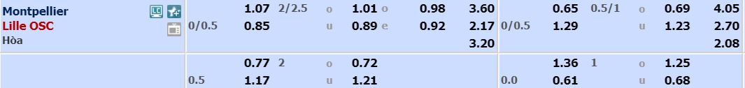 - Mức kèo nhà cái cược chấp trận này: Lille OSC chấp 0,25 trái. Montpellier ăn 1,07. Lille OSC ăn 0,85
