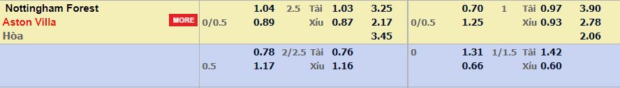 Tỷ lệ cược Nottingham vs Aston Villa – 02h00 – 11/10/2022