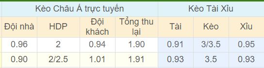 - Mức kèo nhà cái tài xỉu trận này: 3,5 trái. Kèo Tài ăn 0,93. Kèo Xỉu ăn 0,93
