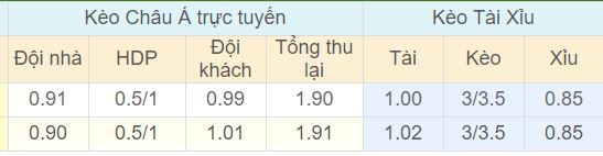 - Mức kèo tài xỉu kèo nhà cái hôm nay đưa ra cho cả trận: 3,25 trái. Tài ăn 1,00. Xỉu ăn 0,85