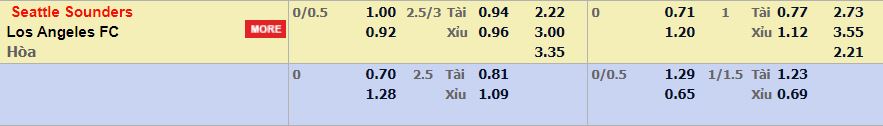 - Mức kèo nhà cái đưa ra trận này: Seattle chấp 0,25 Trái. Seattle ăn 1,00. Los Angeles ăn 0,92