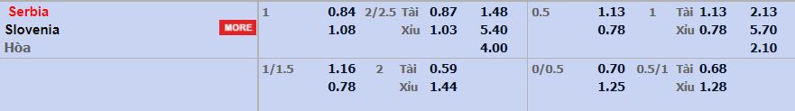 - Mức kèo nhà cái đưa ra trận này: Serbia chấp 1 Trái, Serbia ăn 0,84. Slovenia ăn 1,08