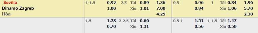 - Mức kèo nhà cái đưa ra trận này: Sevilla chấp 1,25 Trái. Sevilla ăn 0,92. D. Zagreb ăn 1,00
