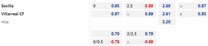 - Mức kèo nhà cái cược chấp trận này: Hòa – Được – Thua. Sevilla ăn 0,95. Villarreal ăn 0,97