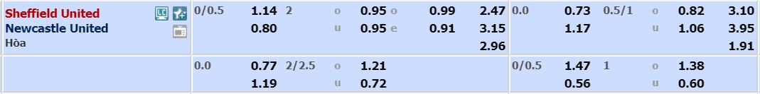 - Mức kèo nhà cái cược chấp trận này: Sheffield chấp 0,25 trái. Sheffield ăn 1.14. Newcastle ăn 0,80